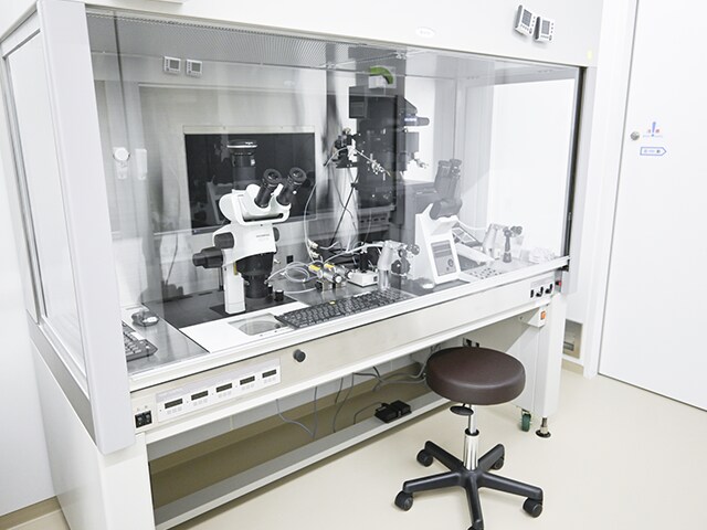 採卵や移植用のクリーベンチです。インキュベーターが内蔵されて、胚(受精卵)や卵子のストレスを軽減します。